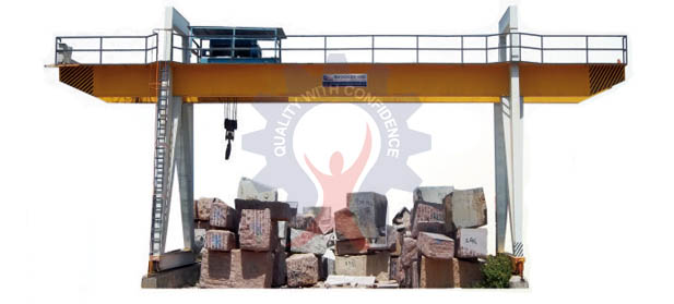 Gantry crane is best suited for handling of material/blocks in an open yard.the crane has fabricated box structure of M.S.plates. The Crane is operated by pedent switch.The crane is perfectly balanced uniform load distribution has been done on all the four wheel boxes.